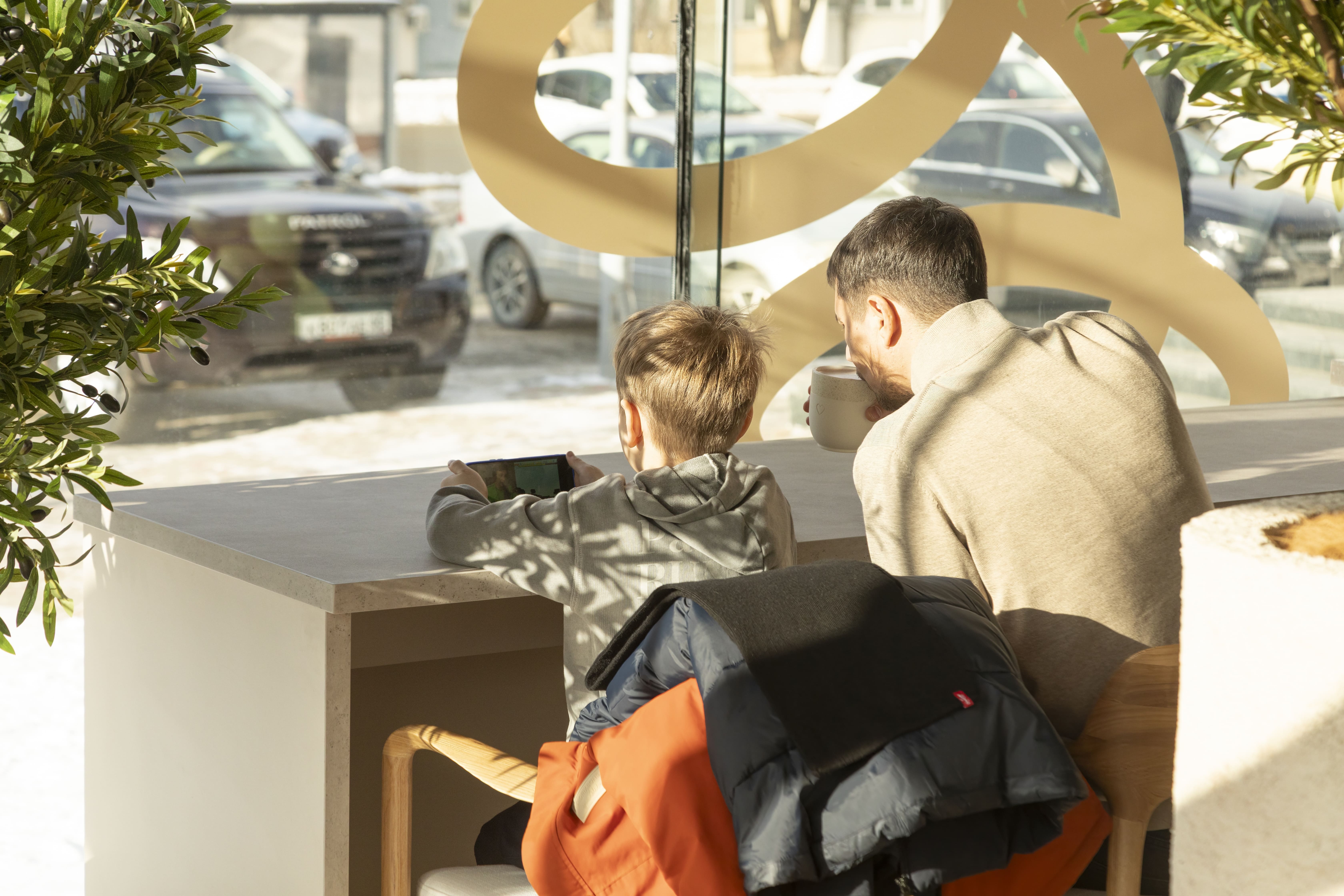 В небольшом пространстве не стоит ждать шумных вечеринок и яркого декора — здесь можно провести время с компанией или спокойно поработать после сытного перекуса.